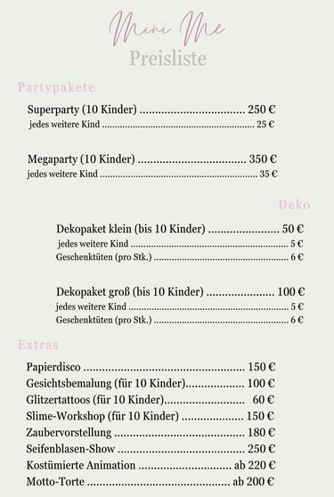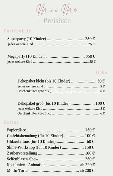(2-stündiges Partypaket á 25€ pro Kind, ab 10 Kinder)